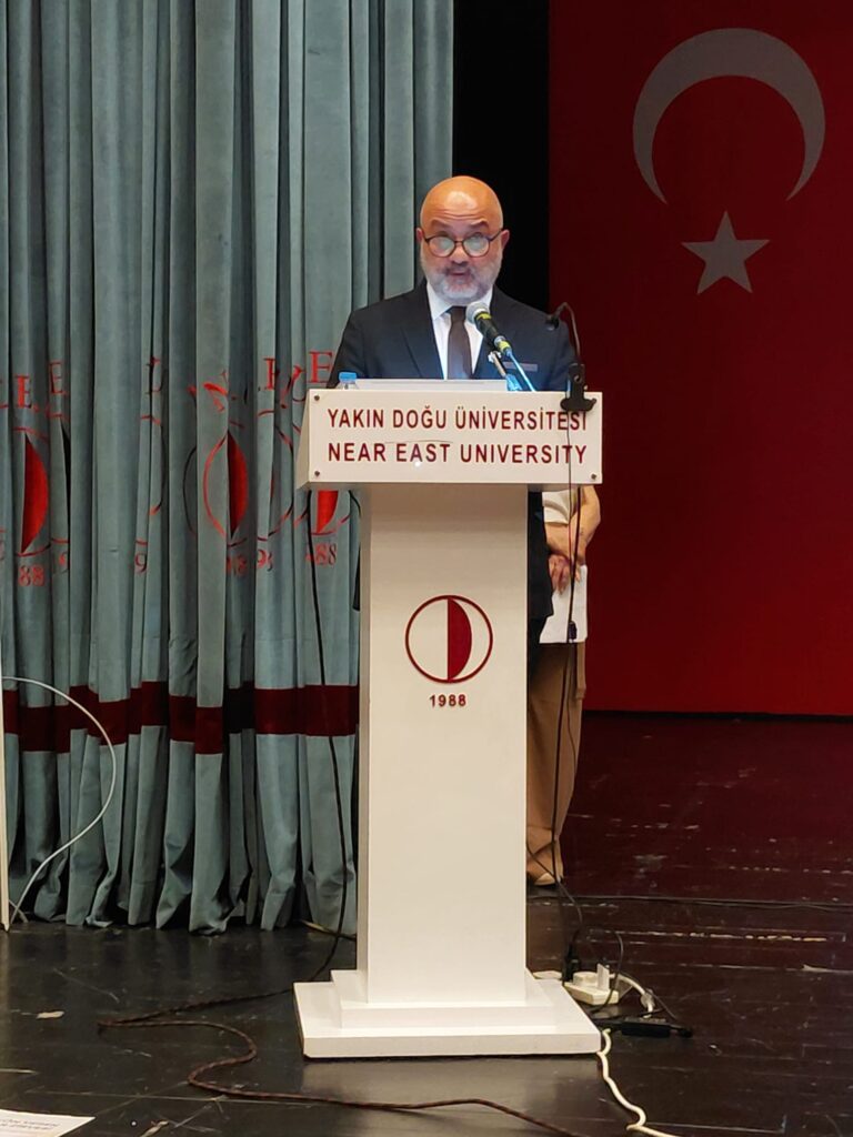 Etkinliğin açılışında konuşan Yakın Doğu Üniversitesi Rektörü Prof. Dr. Tamer Şanlıdağ, üniversitedeki kadın temsiline dikkat çekerek, akademik kadronun yarısının kadınlardan oluştuğunu, idari kadronun ise yüzde 60’ının kadın olduğunu belirtti. Öğrencilerin de yarıdan fazlasının kadın olduğunu vurgulayan Şanlıdağ, “Yakın Doğu Üniversitesi’nde gelecek cinsiyet üzerinden değil, liyakat üzerinden inşa ediliyor. Times Higher Education sıralamasında toplumsal cinsiyet eşitliği alanında 57. sıradayız. Güçlü kadınlar yalnızca kendi hayatlarını değil, toplumların yüzünü de değiştirir” ifadelerini kullandı.