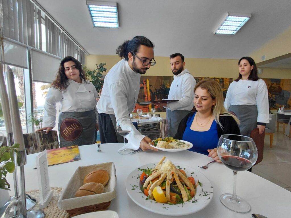 Gusto’da mutfakta üretim ve salonda servis yapmak üzere oluşturulan iki grup öğrenci hizmet veriyor, gruplar zaman zaman yer değiştirerek öğrencilerin farklı deneyimler edinmesi sağlanıyor. Bu sistem sayesinde öğrenciler yalnızca yemek üretmeyi değil; sunum, kuver düzeni, şarap eşleştirmesi ve servis yönetimi gibi süreçleri de birebir deneyimliyor. Öğrencilerin gerçek mutfak stresini burada yaşadığını vurgulayan Ekinci, “Sınıfta yanlış yapma lüksü vardır, yeniden yapabilirsiniz. Ama burada müşteri bekler. On iki dakika içinde doğru ürünü, doğru sunumla çıkarmanız gerekir” dedi.