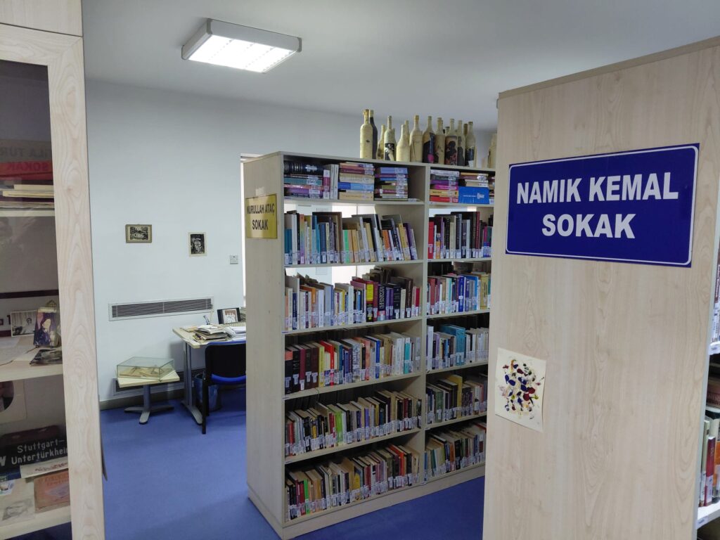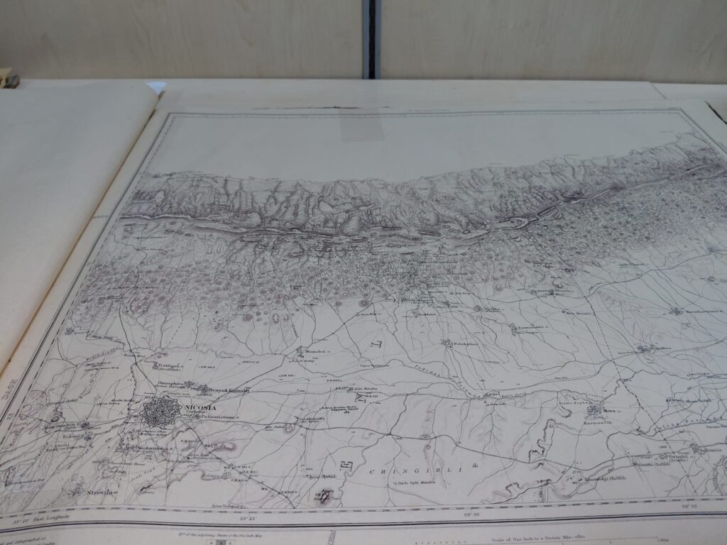 Kütüphanede bulunan nadir eserler hakkında bilgi veren Karahasan, 17. yüzyıla ait ve ticaretle ilgili olan Kitabü’l-Büyü adlı eserin, 1730 tarihli iki ciltlik bir Çince gramer kitabının, Karamanlıca bir İncilin ve İngiliz koloni dönemine ait önemli belgelerin koleksiyonda yer aldığını söyledi. En dikkat çekici eserlerden birinin ise Lord Kitchener tarafından yaptırılan ve Kıbrıs’ın ilk trigonometrik haritası olduğunu belirten Karahasan, bu haritanın 1882 tarihli olduğunu ve ölçümlerinin zincirlerle yapıldığını ifade etti.